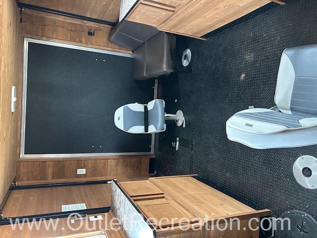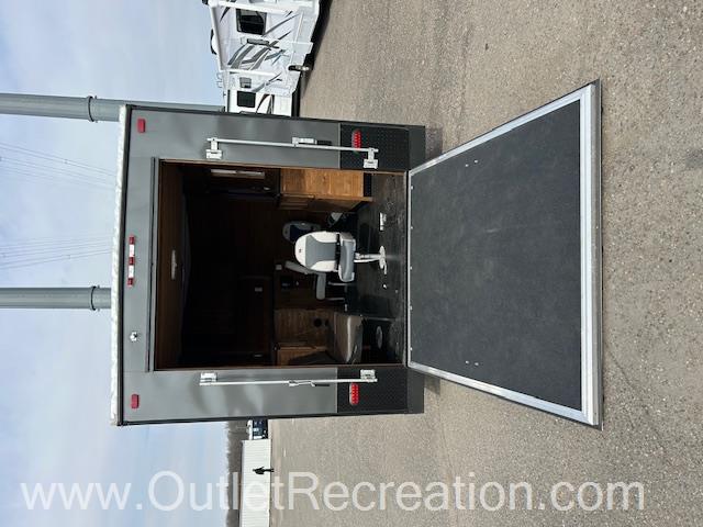 Toy Hauler! This 2023 Custom 8x12 Ice Castle has 2 Spear Holes with a power Lift Bed, AC and a Hydraulic Frame.